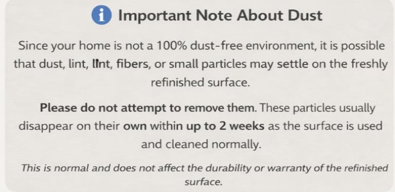 This is normal and does not affect the durability or warranty of the refinished surface.